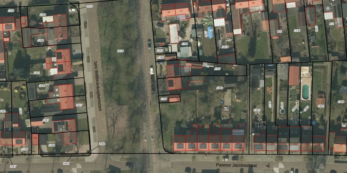 Het perceel waarop Sint Willibrordusplantsoen 7 staat heeft een oppervlakte van 3209 m². Dit is een zeer groot perceel. De perceeloppervlakte wordt geregistreerd door het Kadaster. Gedetailleerde informatie over de maten van dit perceel kunt u vinden in het rapport Kadastrale kaart met maatvoering van Sint Willibrordusplantsoen 7.