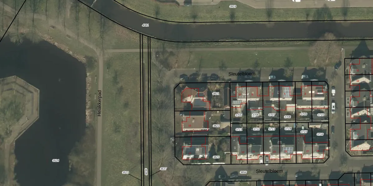Het perceel waarop Sleutelbloem 13 staat heeft een oppervlakte van 446 m². Dit is een groot perceel. De perceeloppervlakte wordt geregistreerd door het Kadaster. Gedetailleerde informatie over de maten van dit perceel kunt u vinden in het rapport Kadastrale kaart met maatvoering van Sleutelbloem 13.