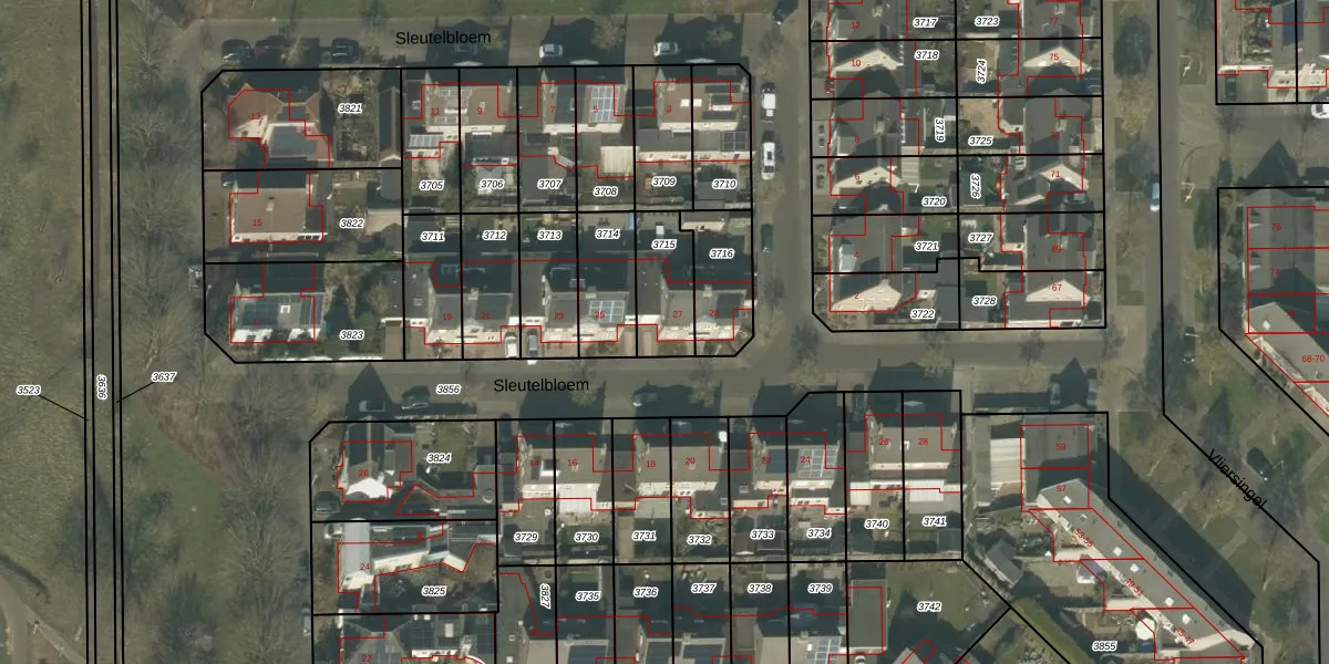 Het perceel waarop Sleutelbloem 27 staat heeft een oppervlakte van 186 m². Dit is een middelgroot perceel. De perceeloppervlakte wordt geregistreerd door het Kadaster. Gedetailleerde informatie over de maten van dit perceel kunt u vinden in het rapport Kadastrale kaart met maatvoering van Sleutelbloem 27.