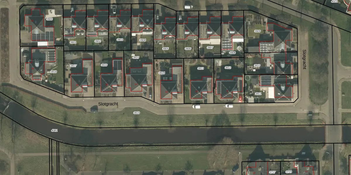 Het perceel waarop Slotgracht 12 staat heeft een oppervlakte van 441 m². Dit is een groot perceel. De perceeloppervlakte wordt geregistreerd door het Kadaster. Gedetailleerde informatie over de maten van dit perceel kunt u vinden in het rapport Kadastrale kaart met maatvoering van Slotgracht 12.