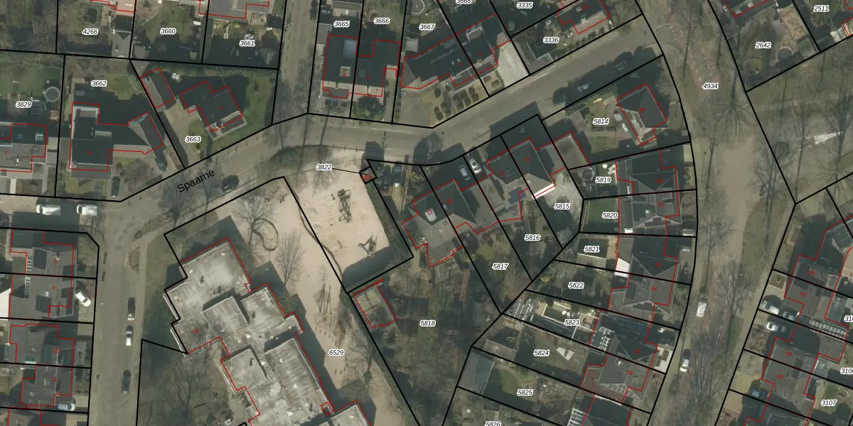 Spaarne 19 is gelegen op kadastraal perceel DNE00L5818. Deze kadastrale aanduiding is uniek en wordt gebruikt door het Kadaster om eigendomsrechten en andere zakelijke rechten vast te leggen. Het perceel maakt onderdeel uit van de kadastrale gemeente Deurne.