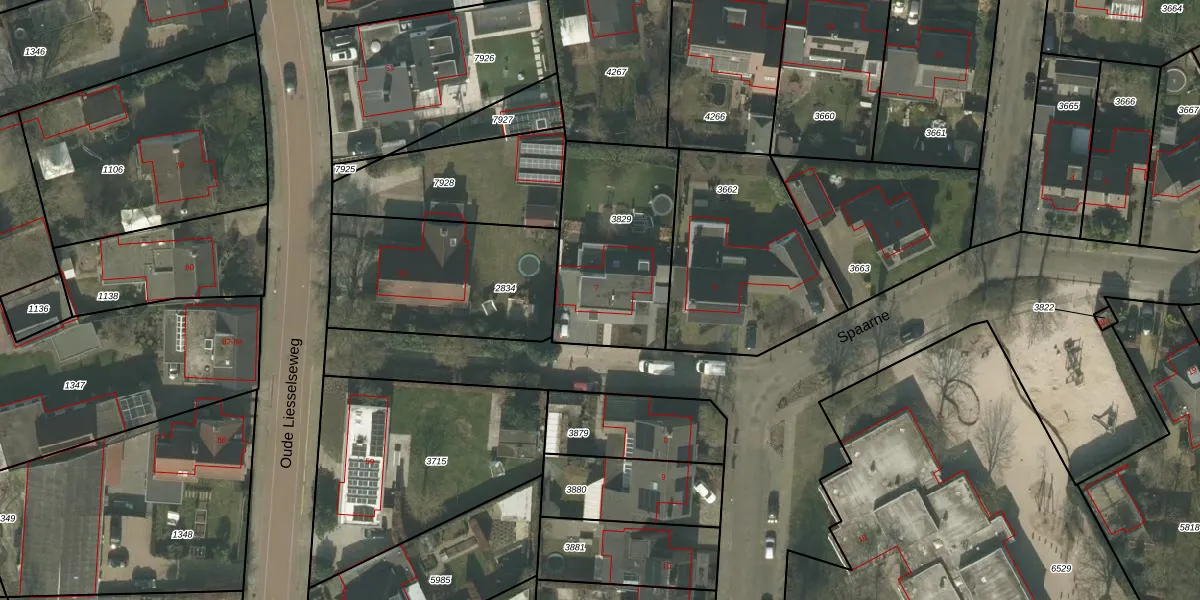Gebruik de zoekbalk of klik op een perceel voor informatie over de adressen binnen dit perceel.