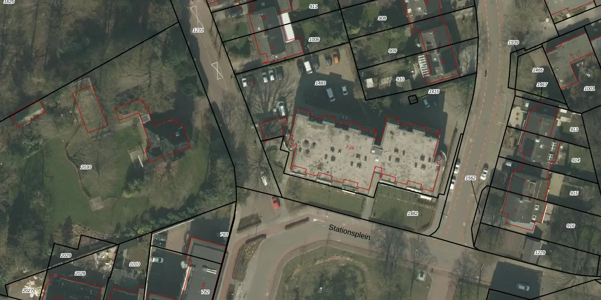 Het perceel waarop Stationsplein 2 staat heeft een oppervlakte van 2563 m². Dit is een zeer groot perceel. De perceeloppervlakte wordt geregistreerd door het Kadaster. Gedetailleerde informatie over de maten van dit perceel kunt u vinden in het rapport Kadastrale kaart met maatvoering van Stationsplein 2.