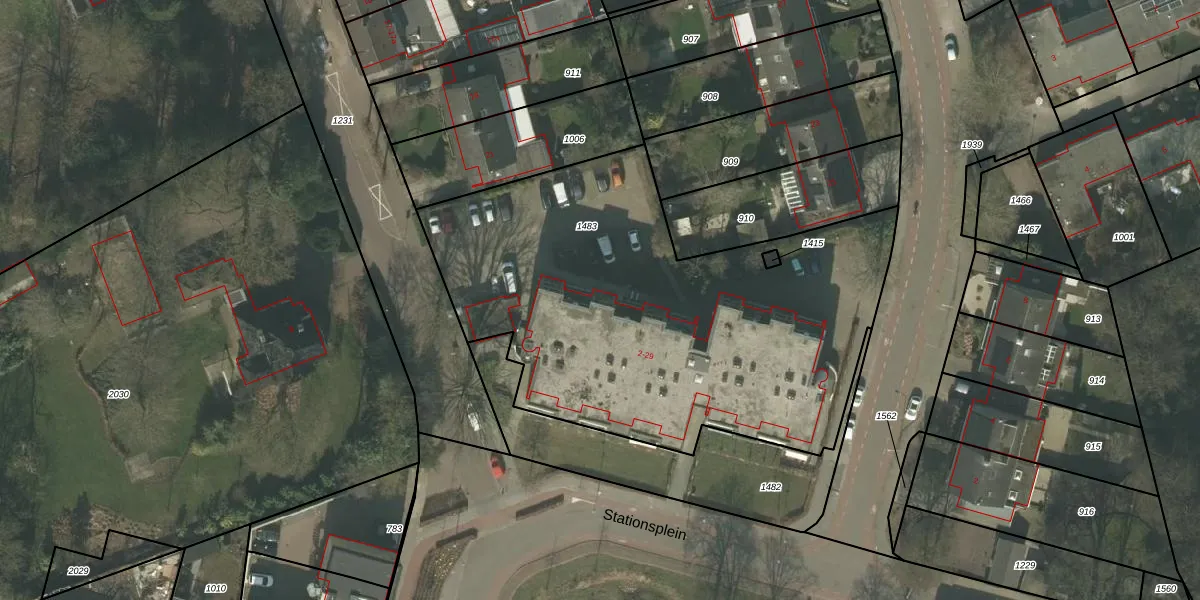 Het perceel waarop Stationsplein 23 staat heeft een oppervlakte van 2563 m². Dit is een zeer groot perceel. De perceeloppervlakte wordt geregistreerd door het Kadaster. Gedetailleerde informatie over de maten van dit perceel kunt u vinden in het rapport Kadastrale kaart met maatvoering van Stationsplein 23.