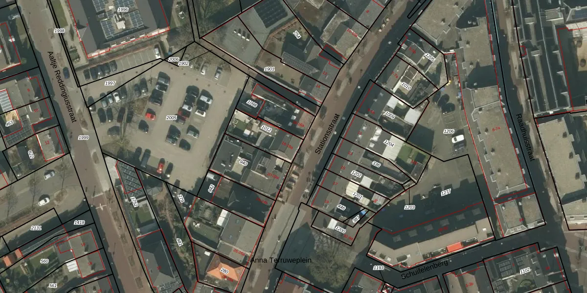 Stationsstraat 18 is gelegen op kadastraal perceel DNE00K1012. Deze kadastrale aanduiding is uniek en wordt gebruikt door het Kadaster om eigendomsrechten en andere zakelijke rechten vast te leggen. Het perceel maakt onderdeel uit van de kadastrale gemeente Deurne.