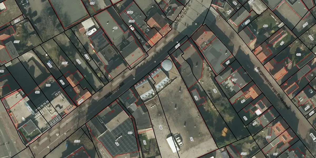 Het perceel waarop Stationsstraat 41 staat heeft een oppervlakte van 1325 m². Dit is een zeer groot perceel. De perceeloppervlakte wordt geregistreerd door het Kadaster. Gedetailleerde informatie over de maten van dit perceel kunt u vinden in het rapport Kadastrale kaart met maatvoering van Stationsstraat 41.