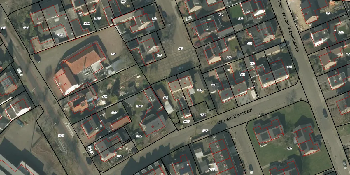 Gebruik de zoekbalk of klik op een perceel voor informatie over de adressen binnen dit perceel.