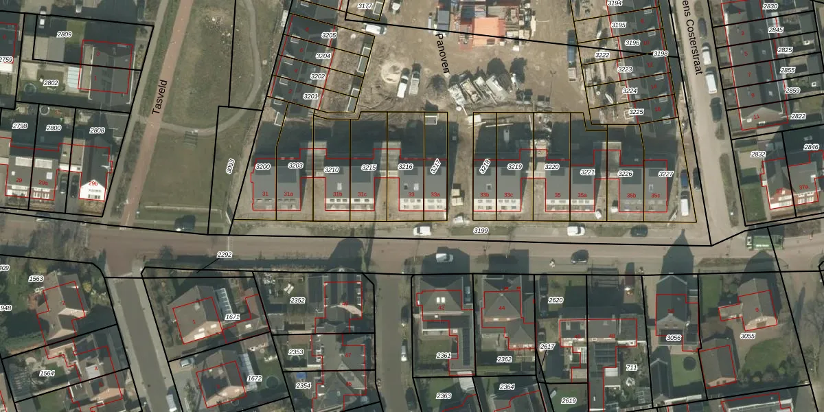 Gebruik de zoekbalk of klik op een perceel voor informatie over de adressen binnen dit perceel.