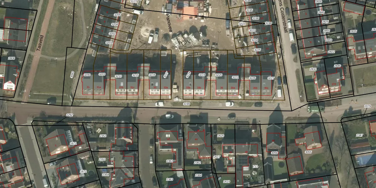 Gebruik de zoekbalk of klik op een perceel voor informatie over de adressen binnen dit perceel.
