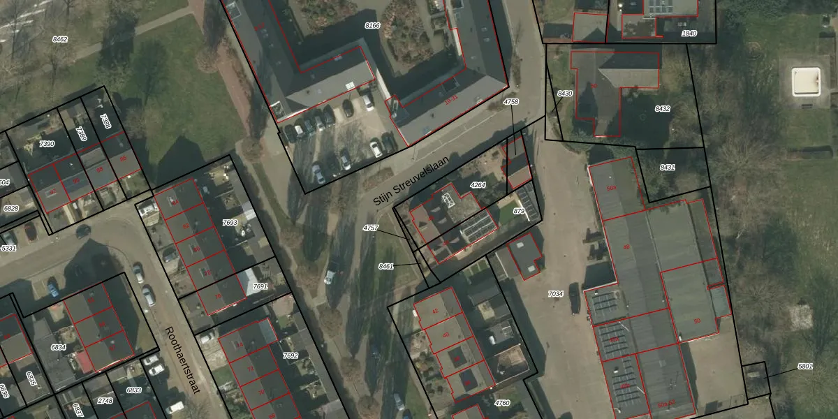 Het perceel waarop Stijn Streuvelslaan 46 staat heeft een oppervlakte van 323 m². Dit is een groot perceel. De perceeloppervlakte wordt geregistreerd door het Kadaster. Gedetailleerde informatie over de maten van dit perceel kunt u vinden in het rapport Kadastrale kaart met maatvoering van Stijn Streuvelslaan 46.