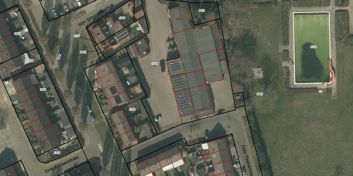 Het perceel waarop Stijn Streuvelslaan 48-a staat heeft een oppervlakte van 3193 m². Dit is een zeer groot perceel. De perceeloppervlakte wordt geregistreerd door het Kadaster. Gedetailleerde informatie over de maten van dit perceel kunt u vinden in het rapport Kadastrale kaart met maatvoering van Stijn Streuvelslaan 48-a.