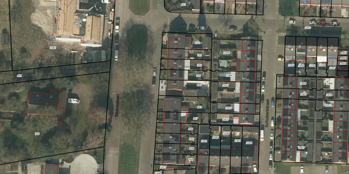 Het perceel waarop Strausslaan 44 staat heeft een oppervlakte van 272 m². Dit is een middelgroot perceel. De perceeloppervlakte wordt geregistreerd door het Kadaster. Gedetailleerde informatie over de maten van dit perceel kunt u vinden in het rapport Kadastrale kaart met maatvoering van Strausslaan 44.