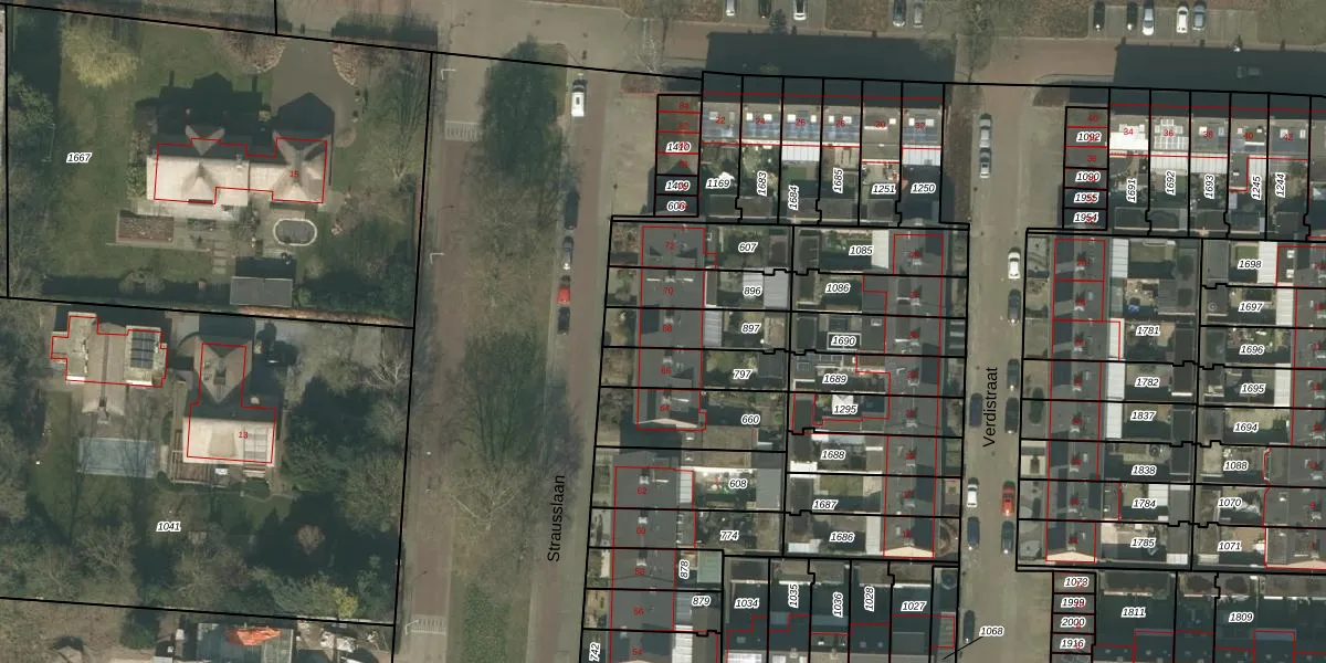 Het perceel waarop Strausslaan 68 staat heeft een oppervlakte van 171 m². Dit is een middelgroot perceel. De perceeloppervlakte wordt geregistreerd door het Kadaster. Gedetailleerde informatie over de maten van dit perceel kunt u vinden in het rapport Kadastrale kaart met maatvoering van Strausslaan 68.