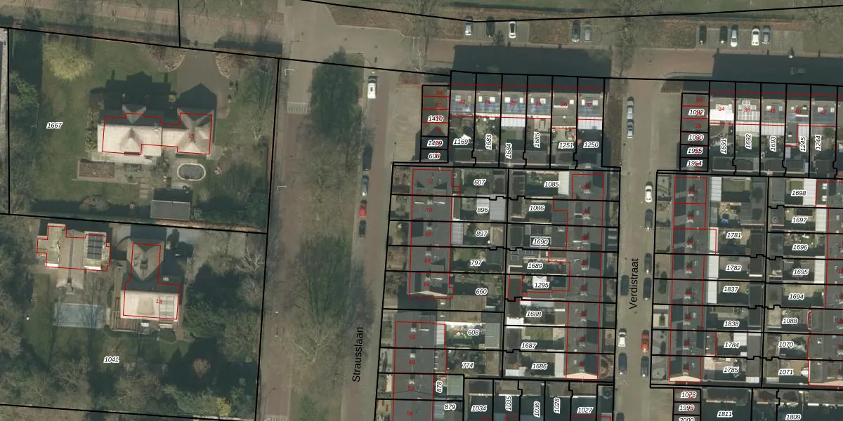 Het perceel waarop Strausslaan 70 staat heeft een oppervlakte van 169 m². Dit is een middelgroot perceel. De perceeloppervlakte wordt geregistreerd door het Kadaster. Gedetailleerde informatie over de maten van dit perceel kunt u vinden in het rapport Kadastrale kaart met maatvoering van Strausslaan 70.