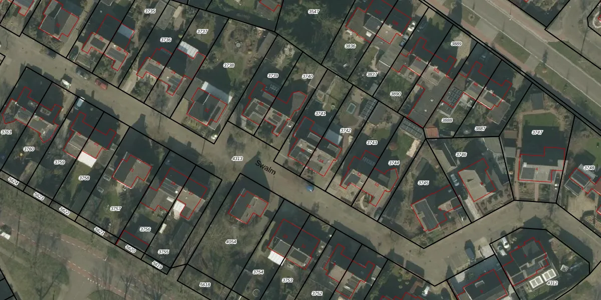 Het perceel waarop Swalm 16 staat heeft een oppervlakte van 357 m². Dit is een groot perceel. De perceeloppervlakte wordt geregistreerd door het Kadaster. Gedetailleerde informatie over de maten van dit perceel kunt u vinden in het rapport Kadastrale kaart met maatvoering van Swalm 16.
