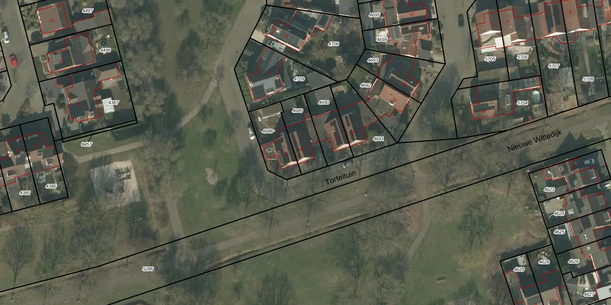 Torteltuin 45 is gelegen op kadastraal perceel DNE00L4689. Deze kadastrale aanduiding is uniek en wordt gebruikt door het Kadaster om eigendomsrechten en andere zakelijke rechten vast te leggen. Het perceel maakt onderdeel uit van de kadastrale gemeente Deurne.