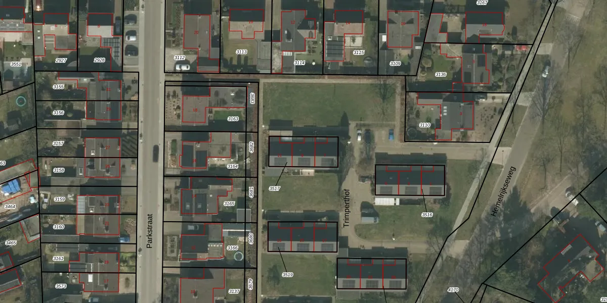 Het perceel waarop Trimperthof 9 staat heeft een oppervlakte van 227 m². Dit is een middelgroot perceel. De perceeloppervlakte wordt geregistreerd door het Kadaster. Gedetailleerde informatie over de maten van dit perceel kunt u vinden in het rapport Kadastrale kaart met maatvoering van Trimperthof 9.