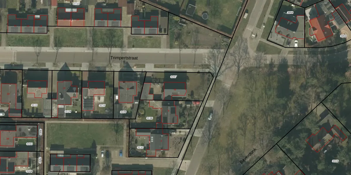 Trimpertstraat 18 is gelegen op kadastraal perceel DNE00C3167. Deze kadastrale aanduiding is uniek en wordt gebruikt door het Kadaster om eigendomsrechten en andere zakelijke rechten vast te leggen. Het perceel maakt onderdeel uit van de kadastrale gemeente Deurne.
