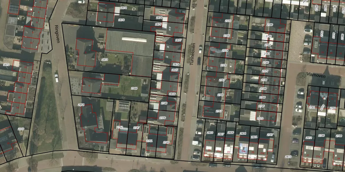 Tunneloven 5 is gelegen op kadastraal perceel DNE00N2816. Deze kadastrale aanduiding is uniek en wordt gebruikt door het Kadaster om eigendomsrechten en andere zakelijke rechten vast te leggen. Het perceel maakt onderdeel uit van de kadastrale gemeente Deurne.