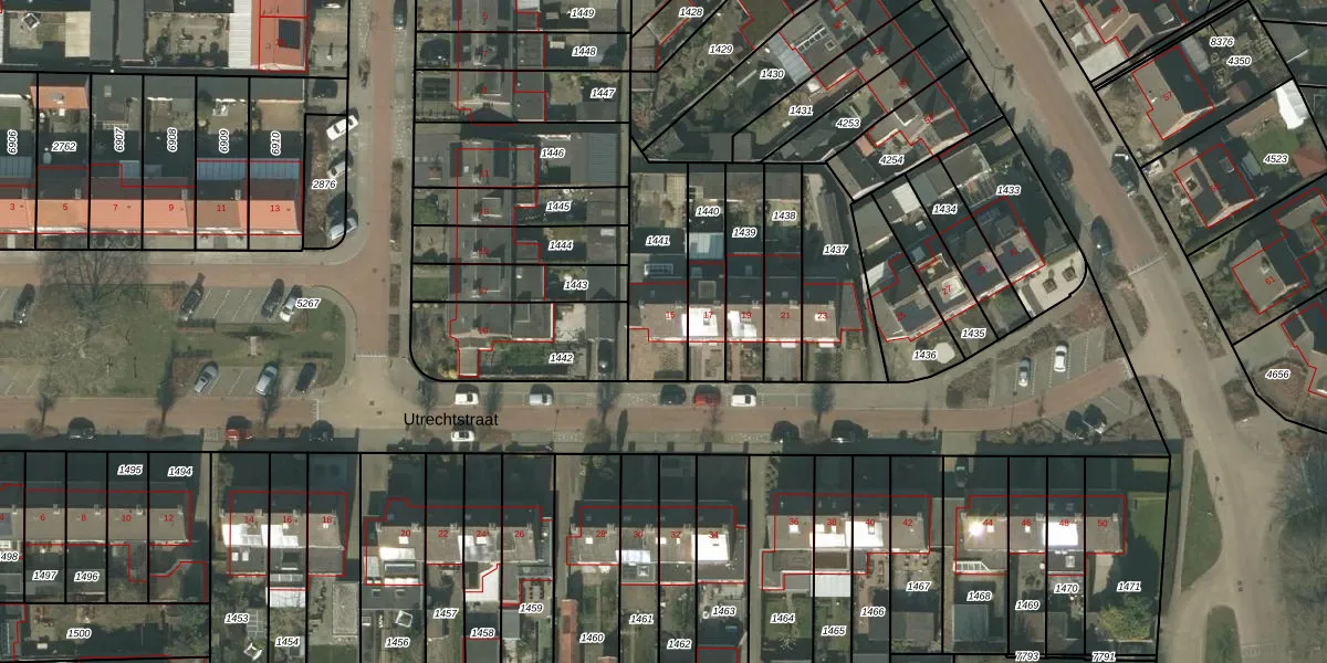 Utrechtstraat 15 is gelegen op kadastraal perceel DNE00L1441. Deze kadastrale aanduiding is uniek en wordt gebruikt door het Kadaster om eigendomsrechten en andere zakelijke rechten vast te leggen. Het perceel maakt onderdeel uit van de kadastrale gemeente Deurne.