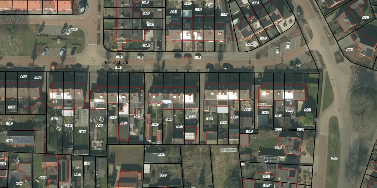 Utrechtstraat 34 is gelegen op kadastraal perceel DNE00L1463. Deze kadastrale aanduiding is uniek en wordt gebruikt door het Kadaster om eigendomsrechten en andere zakelijke rechten vast te leggen. Het perceel maakt onderdeel uit van de kadastrale gemeente Deurne.