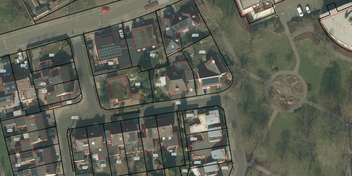 Het perceel waarop van Gilsstraat 3 staat heeft een oppervlakte van 540 m². Dit is een groot perceel. De perceeloppervlakte wordt geregistreerd door het Kadaster. Gedetailleerde informatie over de maten van dit perceel kunt u vinden in het rapport Kadastrale kaart met maatvoering van van Gilsstraat 3.