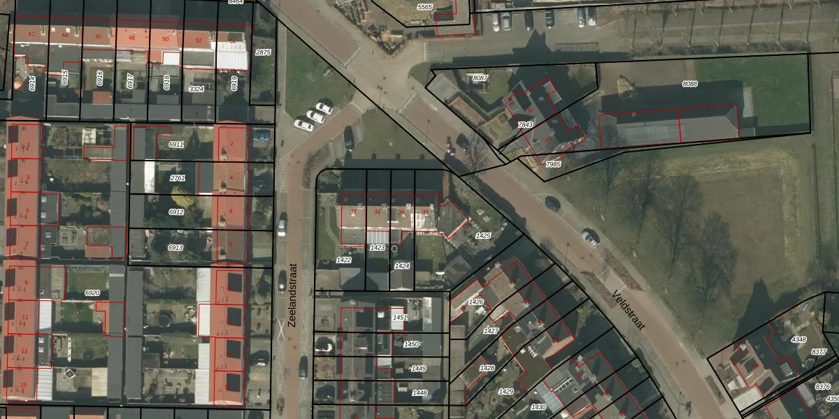 Het perceel waarop Veldstraat 38 staat heeft een oppervlakte van 488 m². Dit is een groot perceel. De perceeloppervlakte wordt geregistreerd door het Kadaster. Gedetailleerde informatie over de maten van dit perceel kunt u vinden in het rapport Kadastrale kaart met maatvoering van Veldstraat 38.