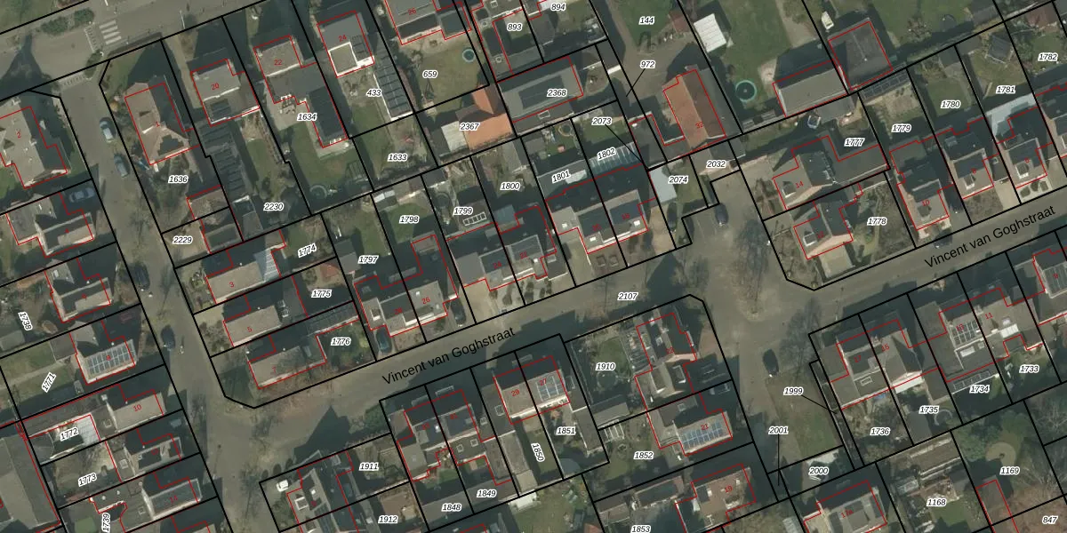 Het perceel waarop Vincent van Goghstraat 22 staat heeft een oppervlakte van 300 m². Dit is een groot perceel. De perceeloppervlakte wordt geregistreerd door het Kadaster. Gedetailleerde informatie over de maten van dit perceel kunt u vinden in het rapport Kadastrale kaart met maatvoering van Vincent van Goghstraat 22.