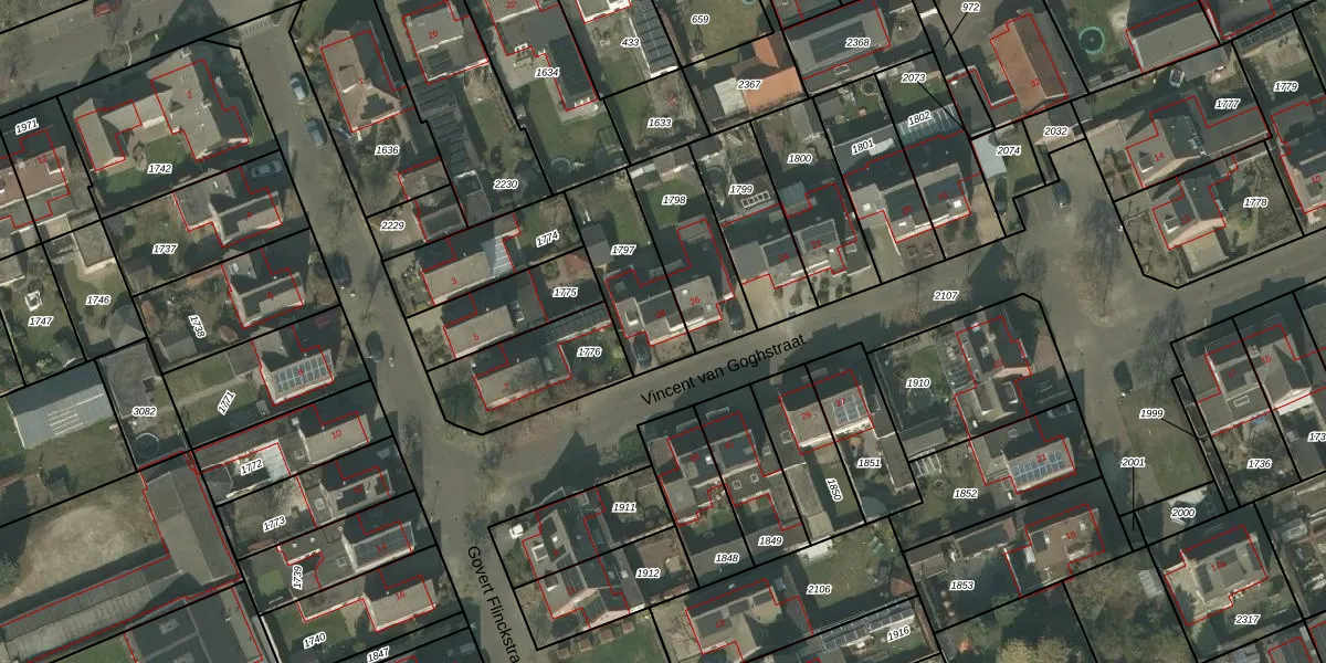 Gebruik de zoekbalk of klik op een perceel voor informatie over de adressen binnen dit perceel.