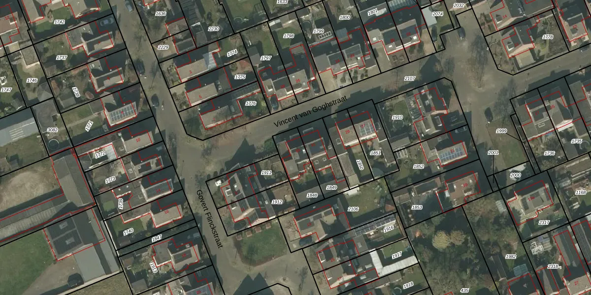 Het perceel waarop Vincent van Goghstraat 33 staat heeft een oppervlakte van 235 m². Dit is een middelgroot perceel. De perceeloppervlakte wordt geregistreerd door het Kadaster. Gedetailleerde informatie over de maten van dit perceel kunt u vinden in het rapport Kadastrale kaart met maatvoering van Vincent van Goghstraat 33.