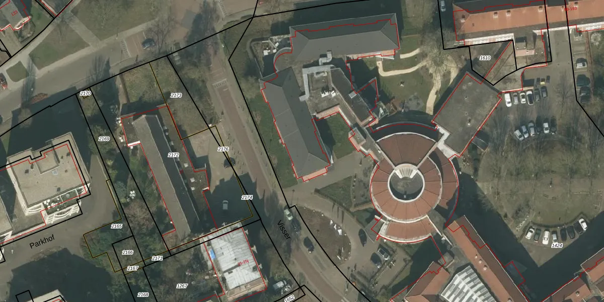 Het perceel waarop Visser 14 staat heeft een oppervlakte van 1,4 ha. Dit is een zeer groot perceel. De perceeloppervlakte wordt geregistreerd door het Kadaster. Gedetailleerde informatie over de maten van dit perceel kunt u vinden in het rapport Kadastrale kaart met maatvoering van Visser 14.