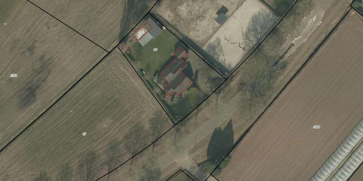 Vlierdenseweg 116 is gelegen op kadastraal perceel DNE00Q98. Deze kadastrale aanduiding is uniek en wordt gebruikt door het Kadaster om eigendomsrechten en andere zakelijke rechten vast te leggen. Het perceel maakt onderdeel uit van de kadastrale gemeente Deurne.