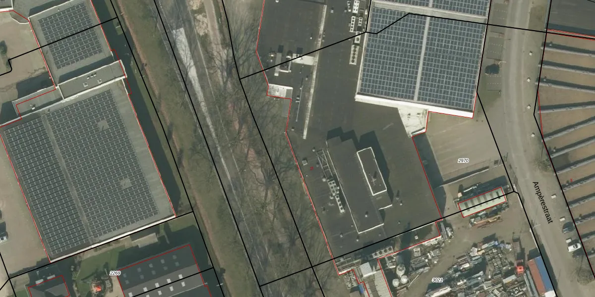 Het perceel waarop Voltstraat 2-f staat heeft een oppervlakte van 5015 m². Dit is een zeer groot perceel. De perceeloppervlakte wordt geregistreerd door het Kadaster. Gedetailleerde informatie over de maten van dit perceel kunt u vinden in het rapport Kadastrale kaart met maatvoering van Voltstraat 2-f.