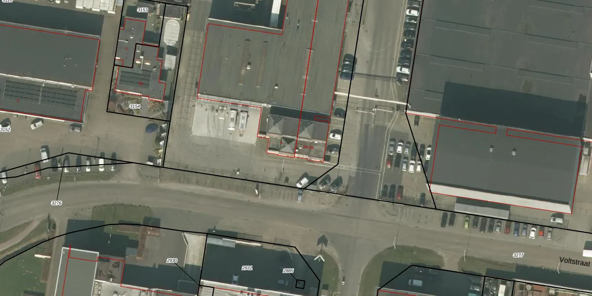Het perceel waarop Voltstraat 5-a staat heeft een oppervlakte van 2,0 ha. Dit is een zeer groot perceel. De perceeloppervlakte wordt geregistreerd door het Kadaster. Gedetailleerde informatie over de maten van dit perceel kunt u vinden in het rapport Kadastrale kaart met maatvoering van Voltstraat 5-a.