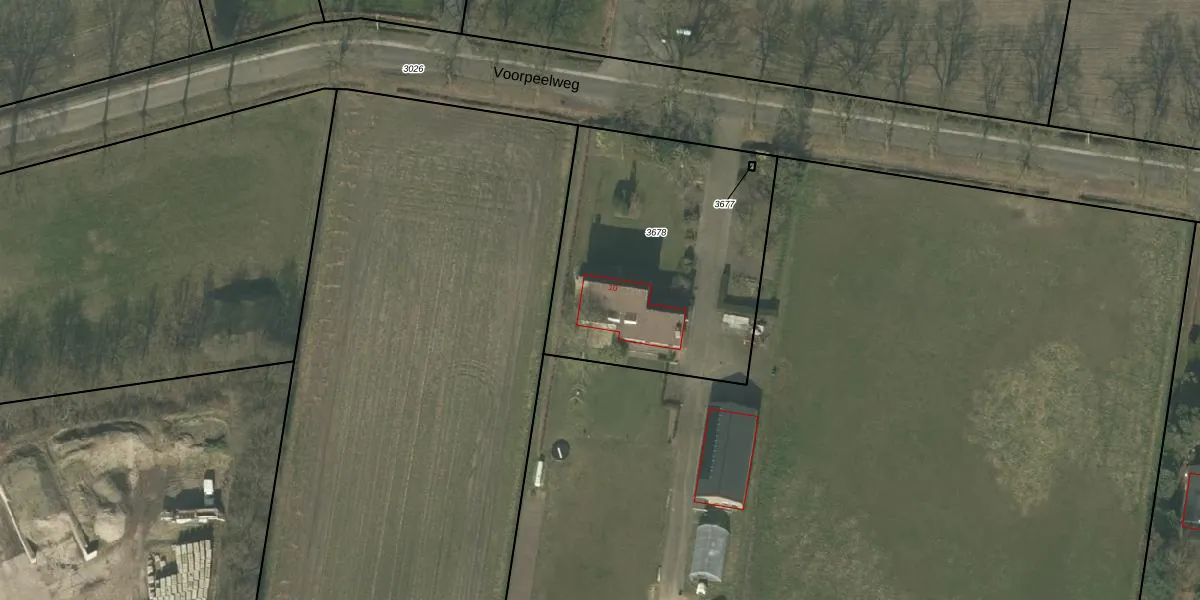Voorpeelweg 10 is gelegen op kadastraal perceel DNE00L3678. Deze kadastrale aanduiding is uniek en wordt gebruikt door het Kadaster om eigendomsrechten en andere zakelijke rechten vast te leggen. Het perceel maakt onderdeel uit van de kadastrale gemeente Deurne.