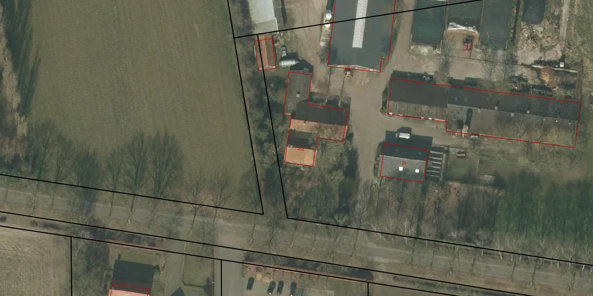 Het perceel waarop Voorpeelweg 25-a staat heeft een oppervlakte van 2,1 ha. Dit is een zeer groot perceel. De perceeloppervlakte wordt geregistreerd door het Kadaster. Gedetailleerde informatie over de maten van dit perceel kunt u vinden in het rapport Kadastrale kaart met maatvoering van Voorpeelweg 25-a.