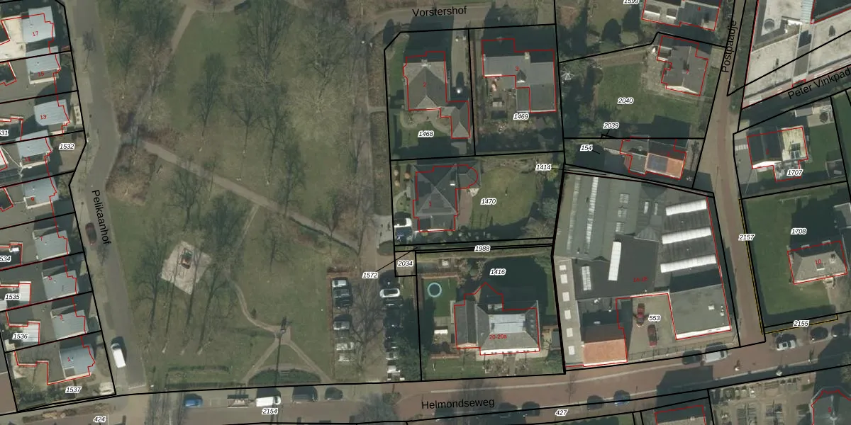Vorstershof 1 is gelegen op kadastraal perceel DNE00K1470. Deze kadastrale aanduiding is uniek en wordt gebruikt door het Kadaster om eigendomsrechten en andere zakelijke rechten vast te leggen. Het perceel maakt onderdeel uit van de kadastrale gemeente Deurne.