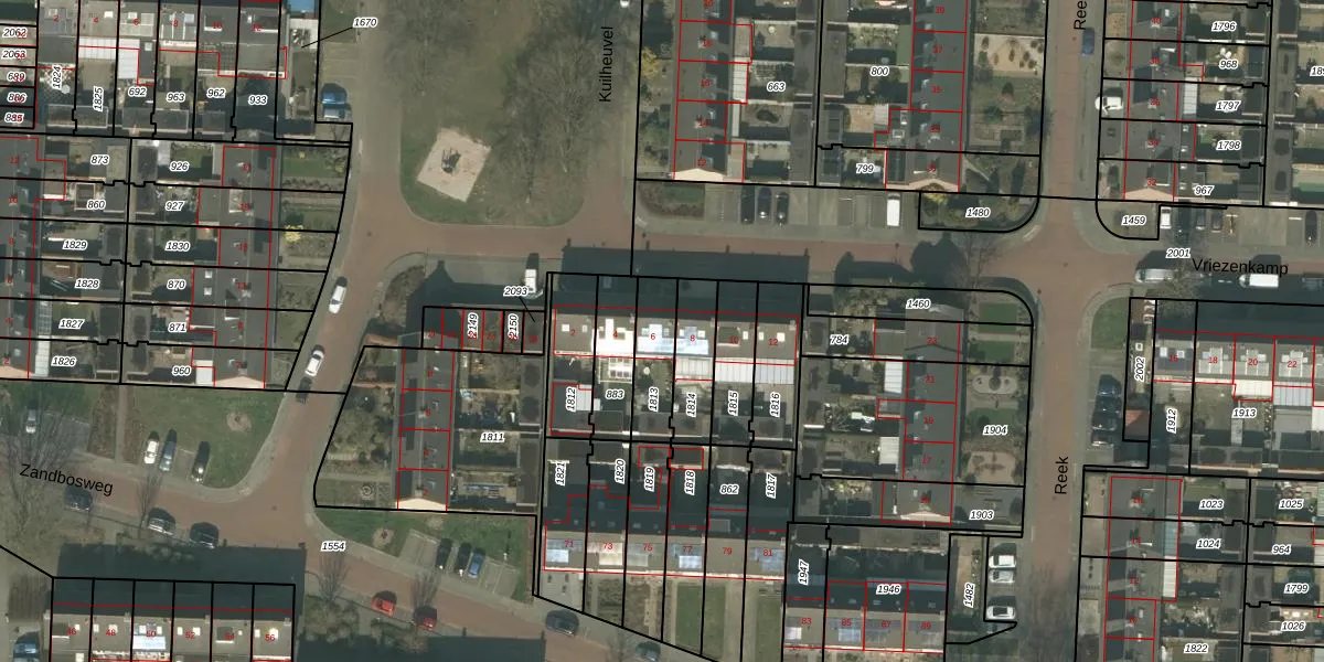 Gebruik de zoekbalk of klik op een perceel voor informatie over de adressen binnen dit perceel.