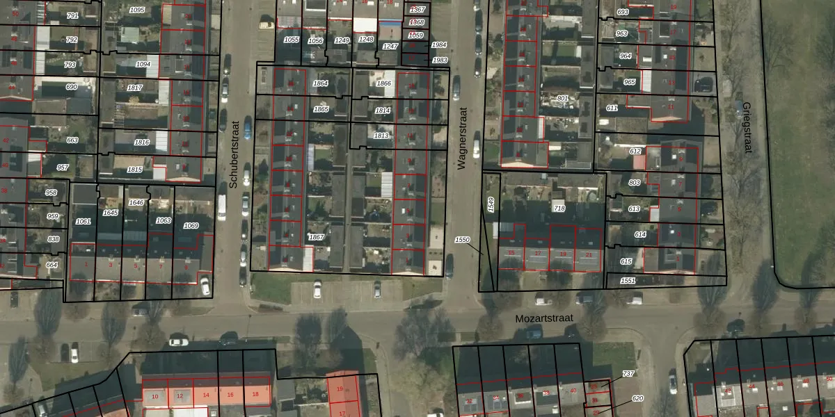 Het perceel waarop Wagnerstraat 5 staat heeft een oppervlakte van 1532 m². Dit is een zeer groot perceel. De perceeloppervlakte wordt geregistreerd door het Kadaster. Gedetailleerde informatie over de maten van dit perceel kunt u vinden in het rapport Kadastrale kaart met maatvoering van Wagnerstraat 5.