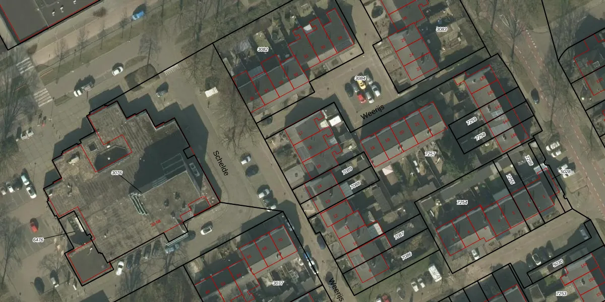 Het perceel waarop Weerijs 16 staat heeft een oppervlakte van 2332 m². Dit is een zeer groot perceel. De perceeloppervlakte wordt geregistreerd door het Kadaster. Gedetailleerde informatie over de maten van dit perceel kunt u vinden in het rapport Kadastrale kaart met maatvoering van Weerijs 16.