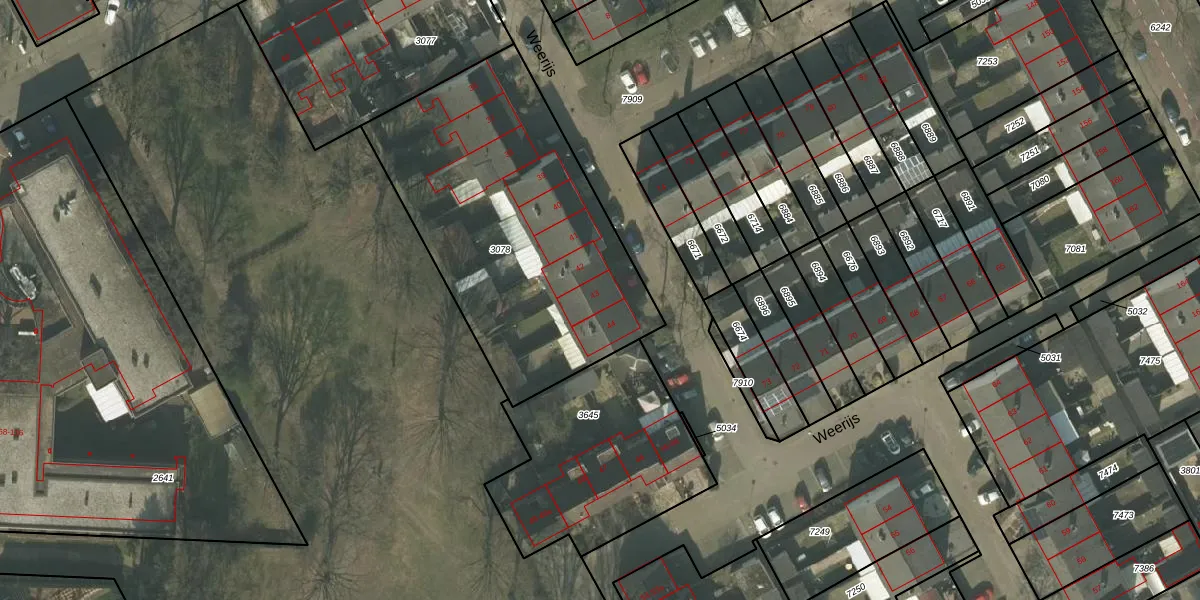 Het perceel waarop Weerijs 43 staat heeft een oppervlakte van 1545 m². Dit is een zeer groot perceel. De perceeloppervlakte wordt geregistreerd door het Kadaster. Gedetailleerde informatie over de maten van dit perceel kunt u vinden in het rapport Kadastrale kaart met maatvoering van Weerijs 43.