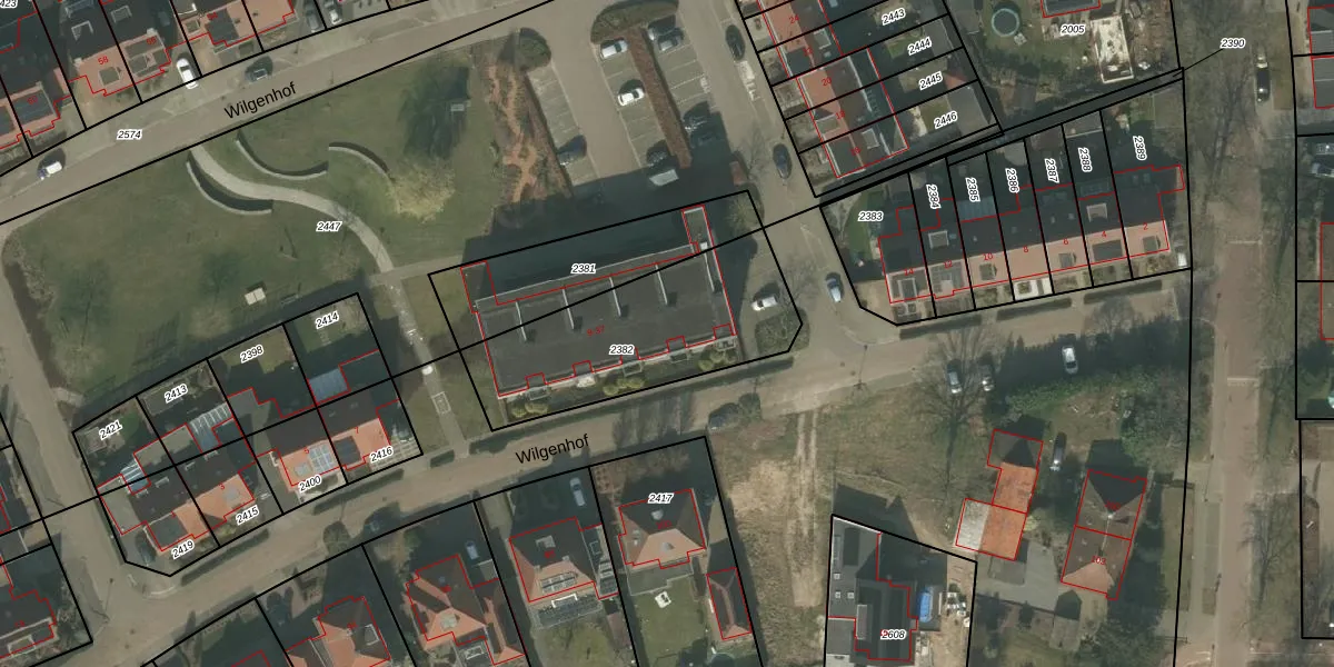 Het perceel waarop Wilgenhof 15 staat heeft een oppervlakte van 775 m². Dit is een groot perceel. De perceeloppervlakte wordt geregistreerd door het Kadaster. Gedetailleerde informatie over de maten van dit perceel kunt u vinden in het rapport Kadastrale kaart met maatvoering van Wilgenhof 15.