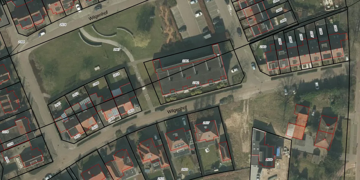Wilgenhof 21 is gelegen op kadastraal perceel DNE00F2382. Deze kadastrale aanduiding is uniek en wordt gebruikt door het Kadaster om eigendomsrechten en andere zakelijke rechten vast te leggen. Het perceel maakt onderdeel uit van de kadastrale gemeente Deurne.