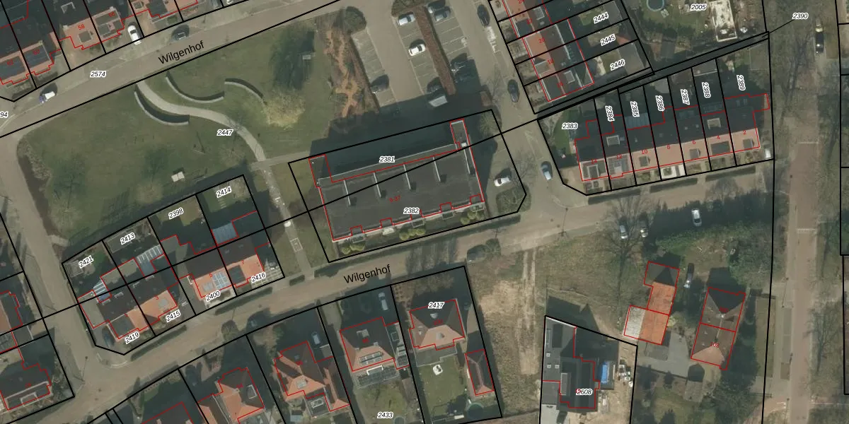 Wilgenhof 23 is gelegen op kadastraal perceel DNE00F2382. Deze kadastrale aanduiding is uniek en wordt gebruikt door het Kadaster om eigendomsrechten en andere zakelijke rechten vast te leggen. Het perceel maakt onderdeel uit van de kadastrale gemeente Deurne.