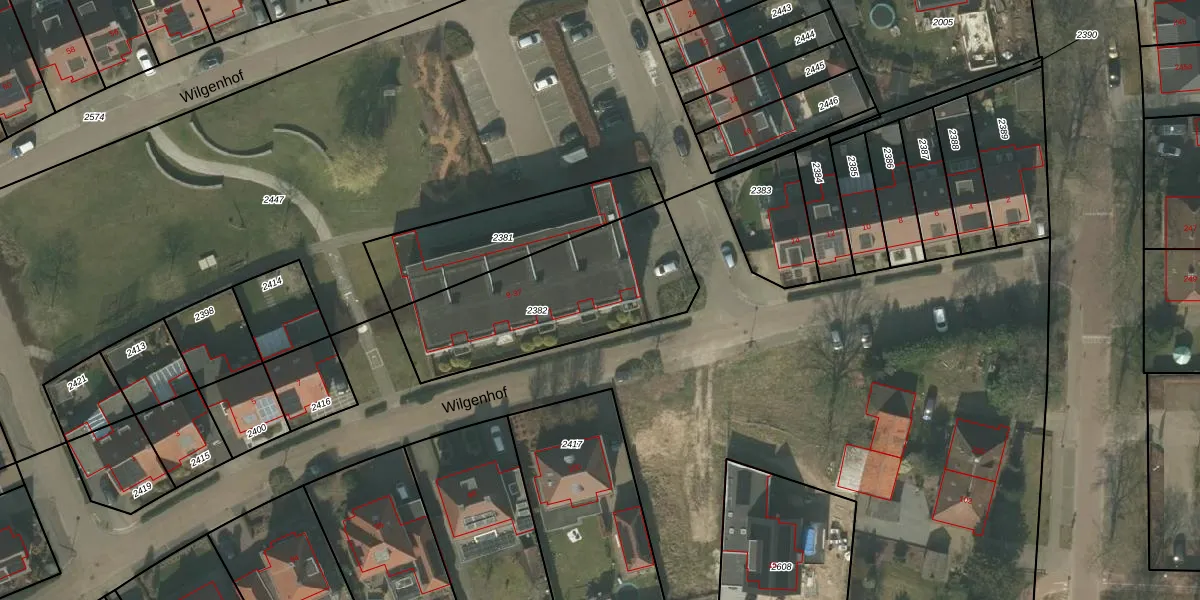 Wilgenhof 25 is gelegen op kadastraal perceel DNE00F2382. Deze kadastrale aanduiding is uniek en wordt gebruikt door het Kadaster om eigendomsrechten en andere zakelijke rechten vast te leggen. Het perceel maakt onderdeel uit van de kadastrale gemeente Deurne.