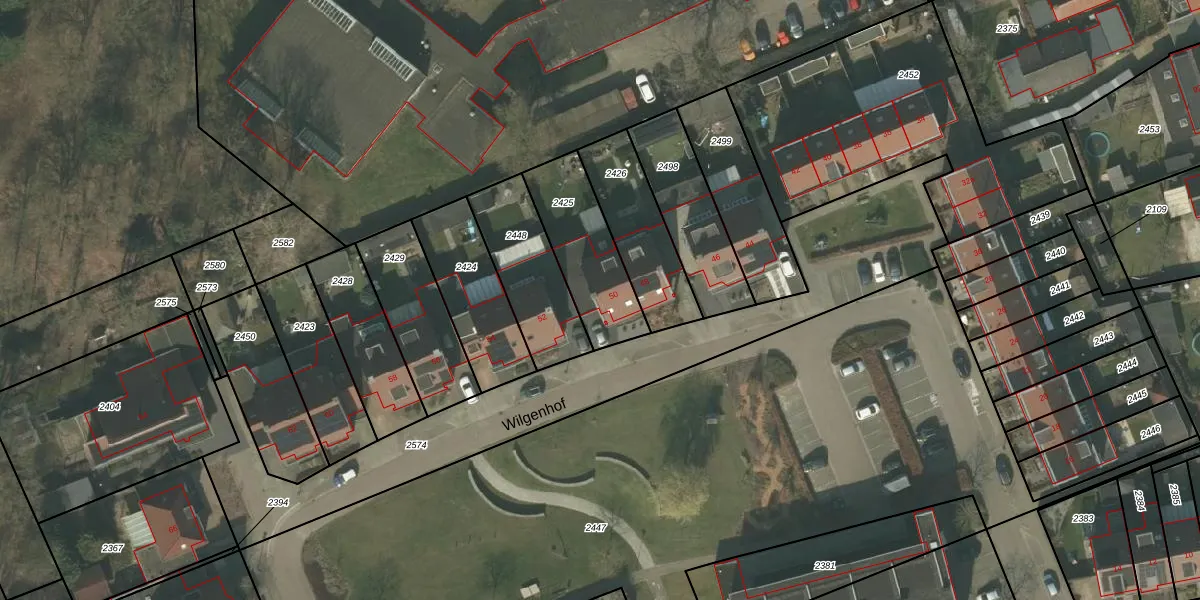 Wilgenhof 50 is gelegen op kadastraal perceel DNE00F2425. Deze kadastrale aanduiding is uniek en wordt gebruikt door het Kadaster om eigendomsrechten en andere zakelijke rechten vast te leggen. Het perceel maakt onderdeel uit van de kadastrale gemeente Deurne.