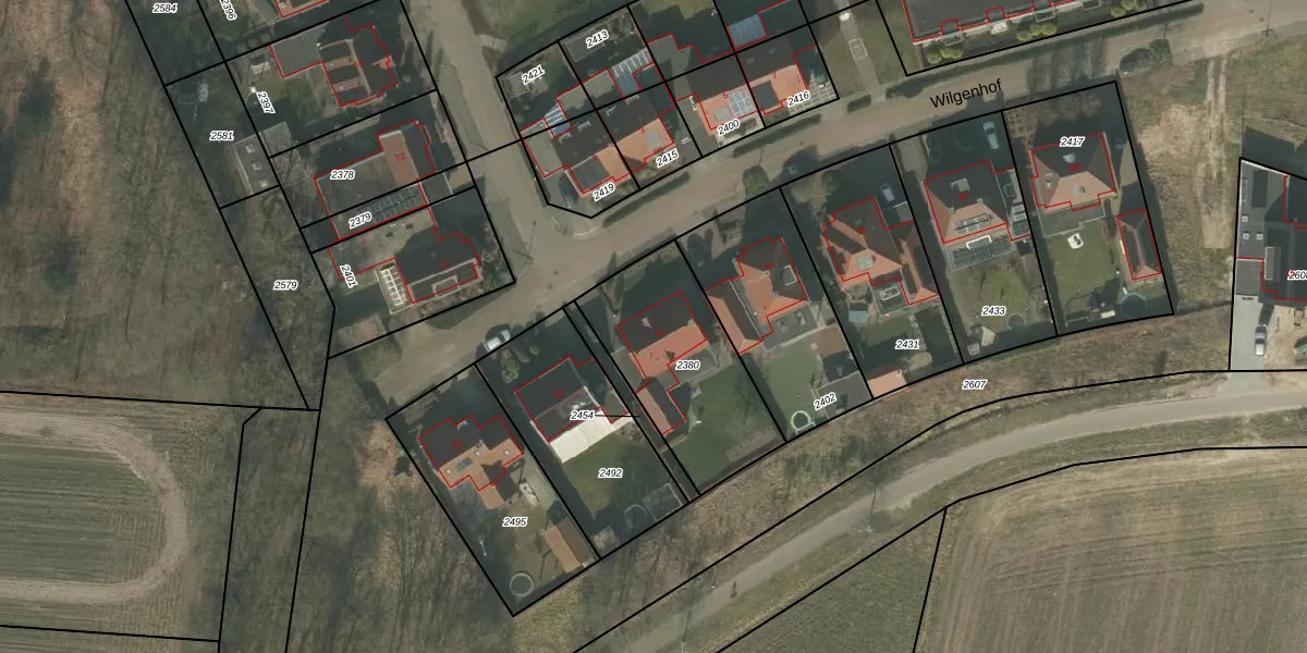 Wilgenhof 92 is gelegen op kadastraal perceel DNE00F2380. Deze kadastrale aanduiding is uniek en wordt gebruikt door het Kadaster om eigendomsrechten en andere zakelijke rechten vast te leggen. Het perceel maakt onderdeel uit van de kadastrale gemeente Deurne.