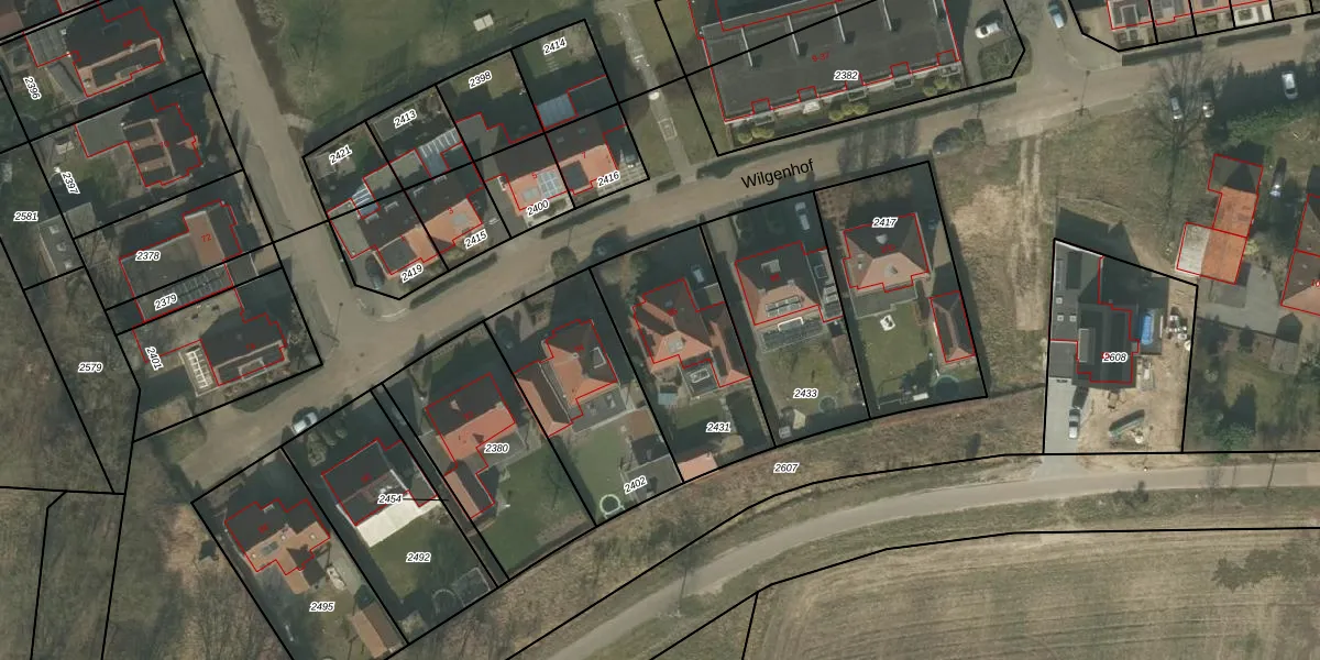 Wilgenhof 96 is gelegen op kadastraal perceel DNE00F2431. Deze kadastrale aanduiding is uniek en wordt gebruikt door het Kadaster om eigendomsrechten en andere zakelijke rechten vast te leggen. Het perceel maakt onderdeel uit van de kadastrale gemeente Deurne.