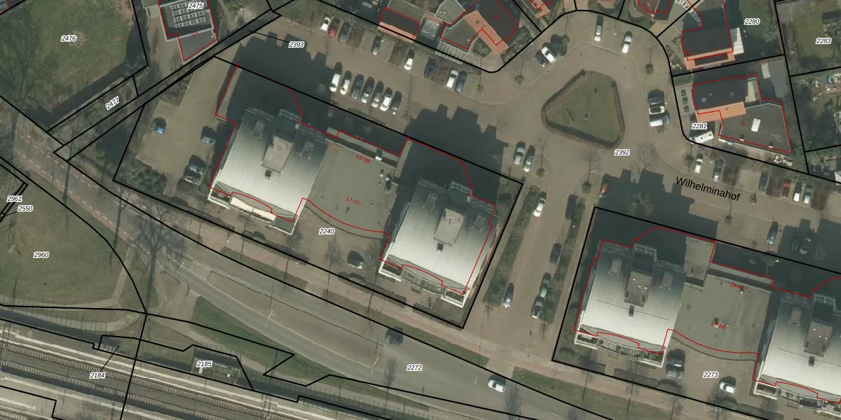 Het perceel waarop Wilhelminahof 27 staat heeft een oppervlakte van 3240 m². Dit is een zeer groot perceel. De perceeloppervlakte wordt geregistreerd door het Kadaster. Gedetailleerde informatie over de maten van dit perceel kunt u vinden in het rapport Kadastrale kaart met maatvoering van Wilhelminahof 27.
