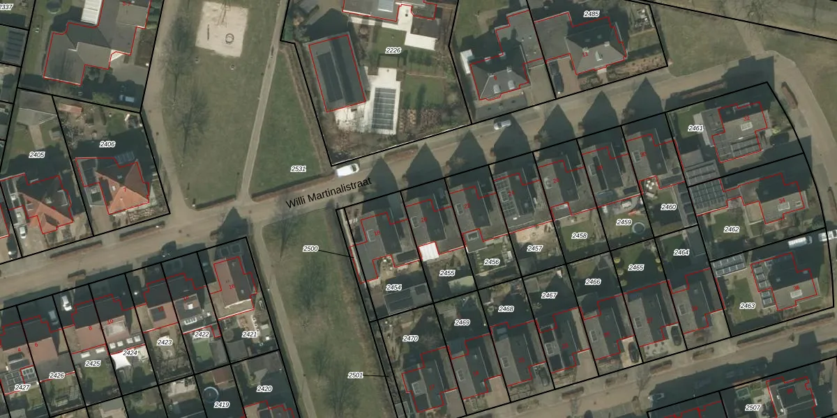 Willi Martinalistraat 20 is gelegen op kadastraal perceel DNE00B2455. Deze kadastrale aanduiding is uniek en wordt gebruikt door het Kadaster om eigendomsrechten en andere zakelijke rechten vast te leggen. Het perceel maakt onderdeel uit van de kadastrale gemeente Deurne.